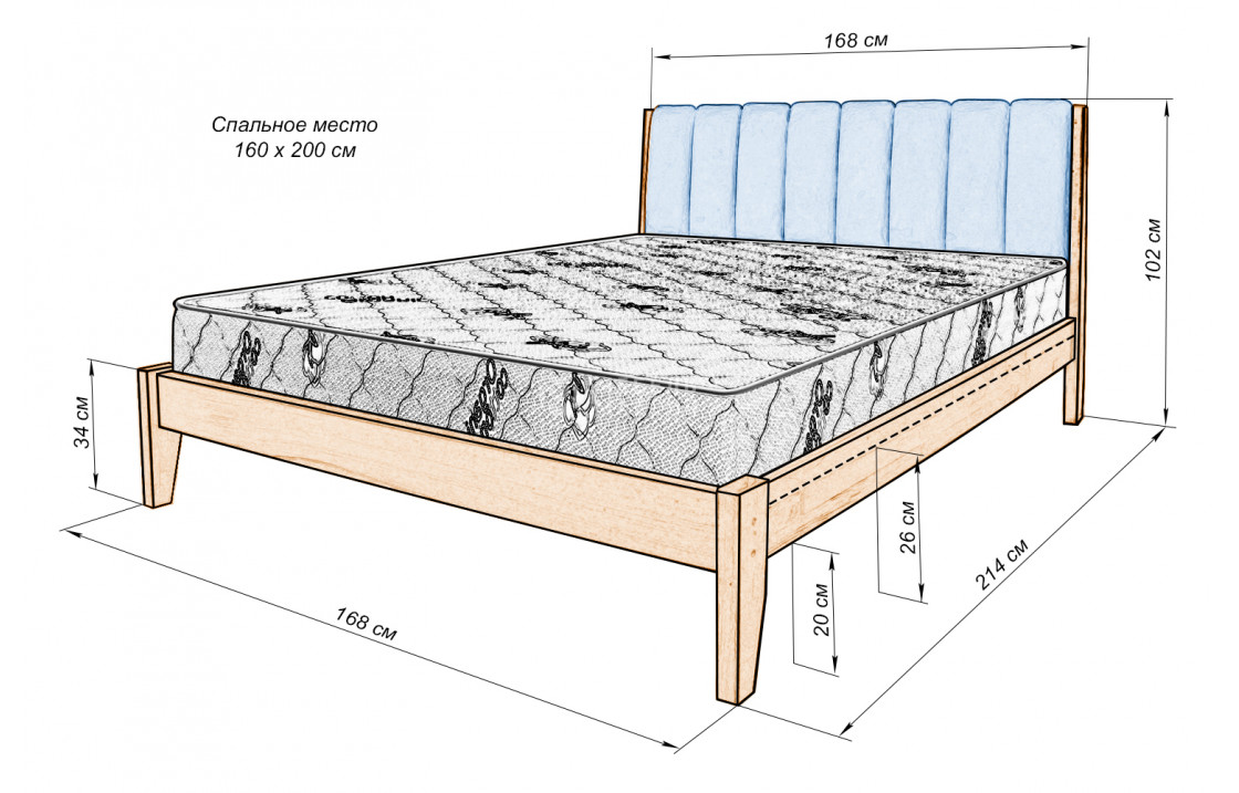 140x200 - глубина уменьшается на 100 мм = 685 мм