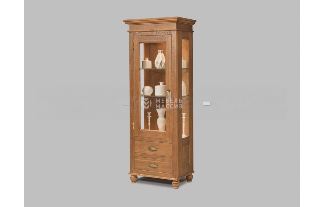 Сервант Винтаж 2 – одностворчатая модель с традиционным внешним видом. Он лучше всего будет выглядеть в классических интерьерах, но при выборе определенного цвета дерева может вписаться и в помещения в современной стилистике. Основной отличительной особенностью изделия являются стекла на большой двери и боковых стенках, благодаря которым можно лицезреть внутреннее содержимое в виде декоративных предметов. Для скрытого хранения вещей у серванта предусмотрено два выдвижных ящика на современных направляющих. Деревянные части модели изготовлены из натурального массива, что обеспечивает общую надёжность и долговечность эксплуатации. Доставка по Хабаровску и Хабаровскому краю.| Размер | Цена | |