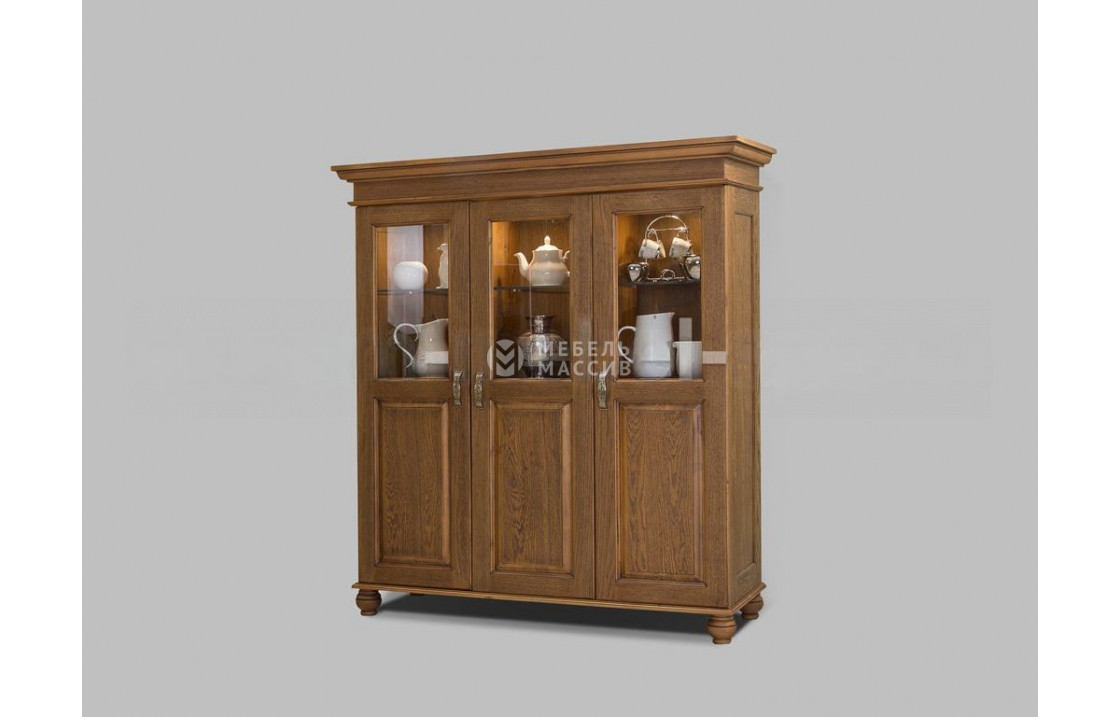 Трехстворчатый сервант из коллекции Винтаж – интересный представитель современной мебели, которую можно легко адаптировать и под классические интерьеры. Он имеет средние габариты и хорошую вместительность. Внутреннее пространство корпуса модели занимают полки, одна часть которых расположена за стеклом, а другая – за монолитным элементом створки. Благодаря наличию застекления в серванте можно хранить декоративные предметы, которые хочется выставить напоказ. Вместе со стеклом материалом изготовления изделия служит настоящее цельное дерево, обеспечивающее надежность и продолжительную эксплуатацию. Доставка по Хабаровску и Хабаровскому краю.| Размер | Цена | |